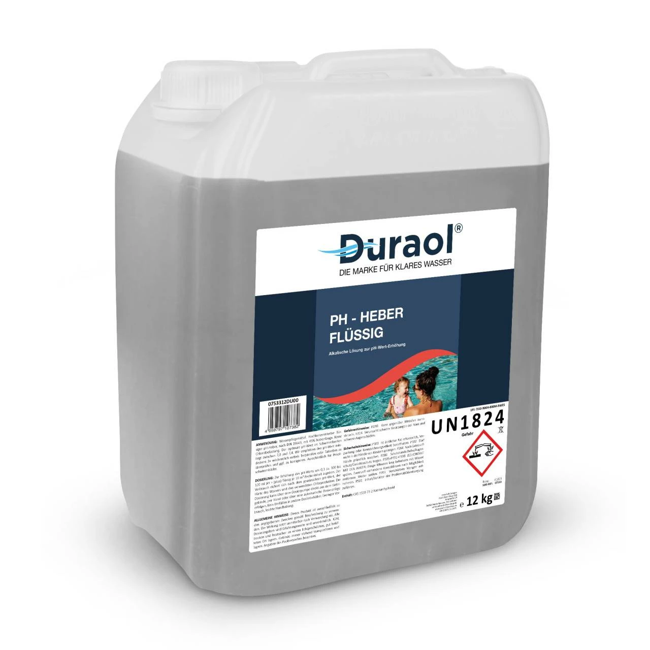 Wasserpflegemittel. Hochkonzentrierter flüssiger pH-Heber, nach DIN 19643, mit 45% Natronlauge. Keine Chloridbelastung. Der optimale pH-Wert im Schwimmbecken liegt zwischen 7,0 und 7,4. Wir empfehlen den pH-Wert mindestens 1x wöchentlich mittels Teststreifen oder Tabletten zu überprüfen und ggf. zu korrigieren. Ausschließlich für Privatschwimmbäder.