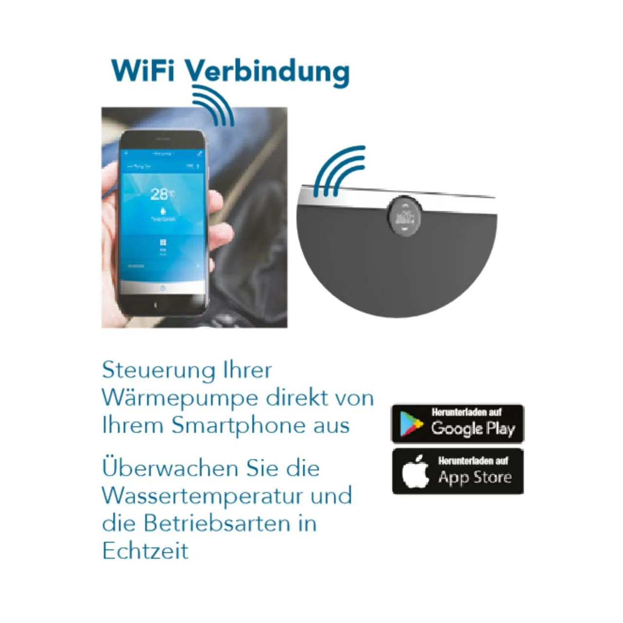 - integriertes Wi-Fi-Modul zur Steuerung per Smartphone (iOS/Android)