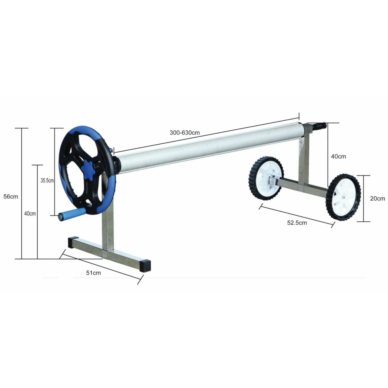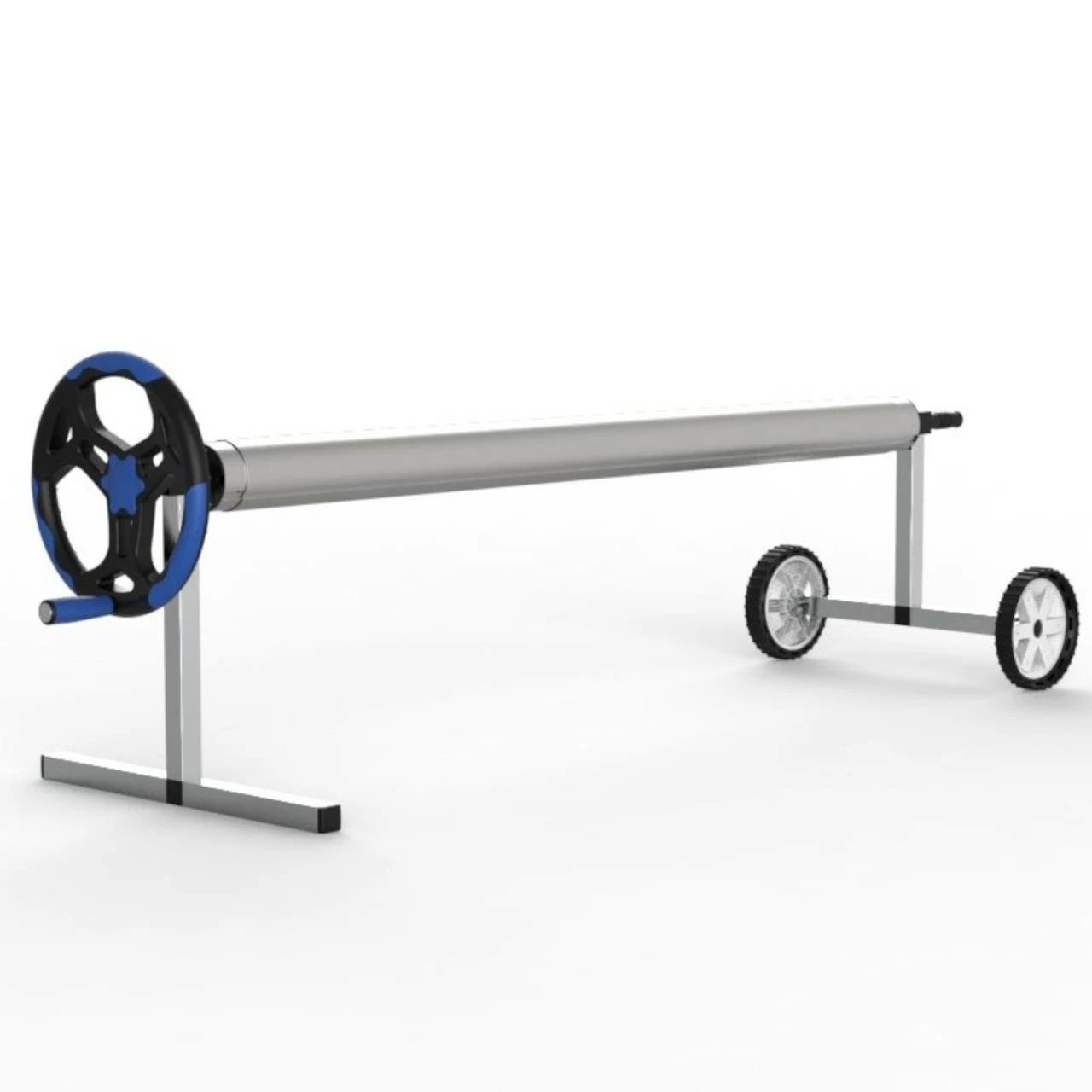 Die Vorrichtung hat auf der einen Seite einen Standfuß und auf der anderen Seite sind Räder montiert. Mit den Rädern kann dieses Poolzubehör ganz leicht weggerollt werden, z.B. für Gartenarbeiten oder zum einwintern.