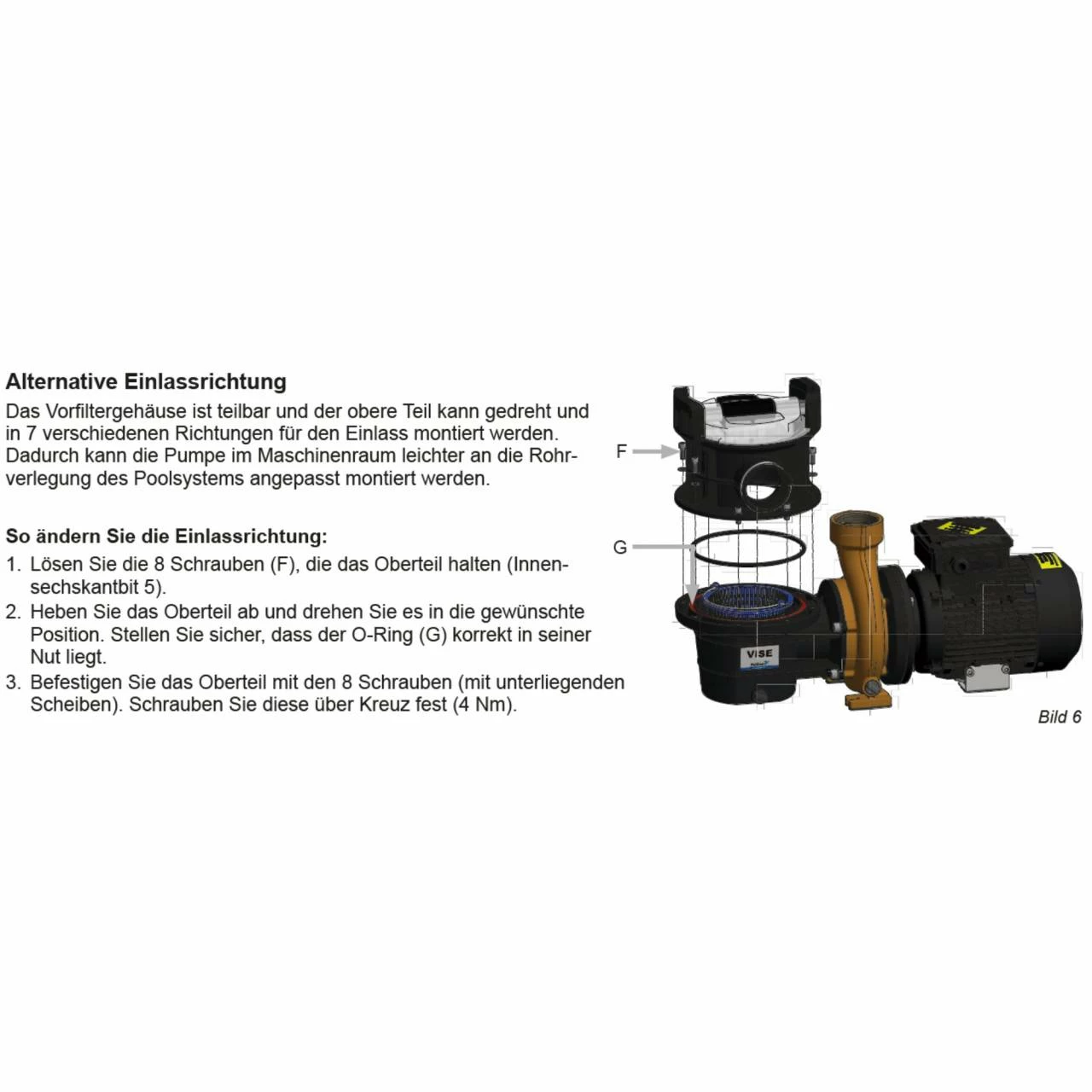 - Normalsaugende Schwimmbadpumpe (Installation unterhalb des Wasserniveaus)