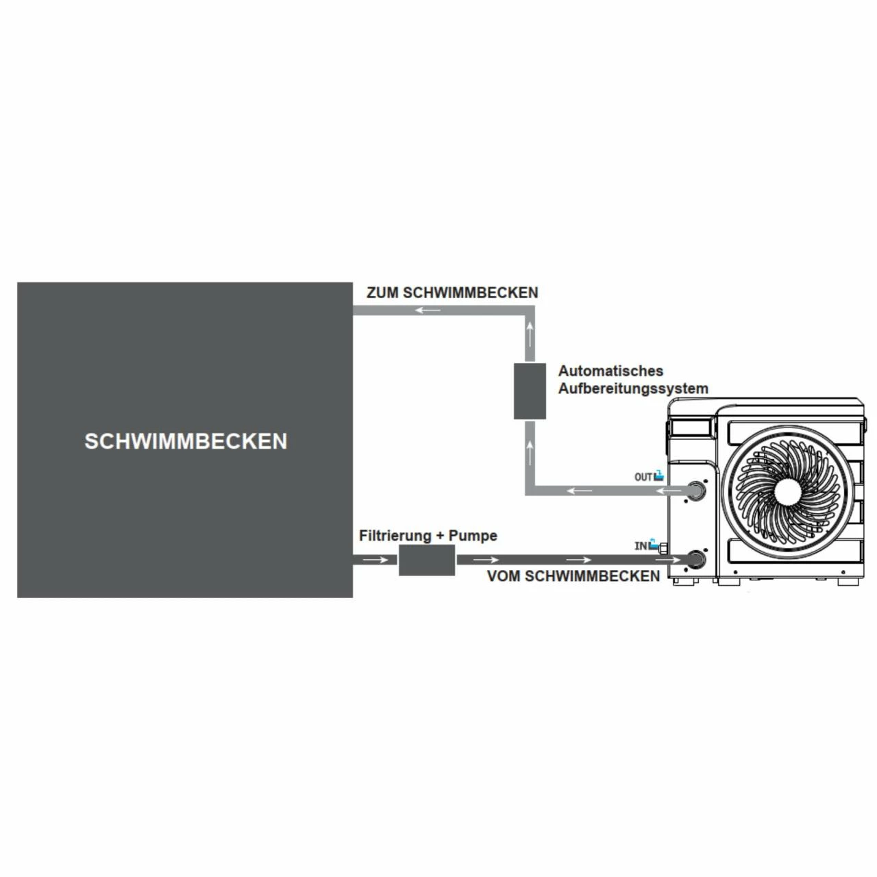 Mit ihrer reversiblen Funktionalität kühlt sie das Wasser in Ihrem Schwimmbad genauso gut ab wie sie es erwärmt. Dies ist besonders nützlich für kleine oberirdische Schwimmbecken, in denen sich das Wasser unter der Einwirkung der Sonnenstrahlen schnell aufheizt, was zu Algenwachstum auf der Poolfolie führt.