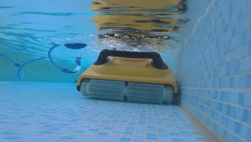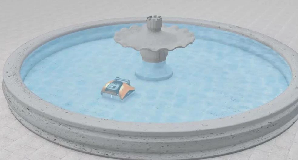 Dynamisches Antriebssystem: Überwindet Hindernisse und ermöglicht so eine unterbrechungsfreie Reinigung. Passt sich an unregelmäßig geformte Schwimmbäder und Beach-Entry-Schwimmbäder an. Bewegt sich effizient auf allen Arten von Bodenoberflächen.