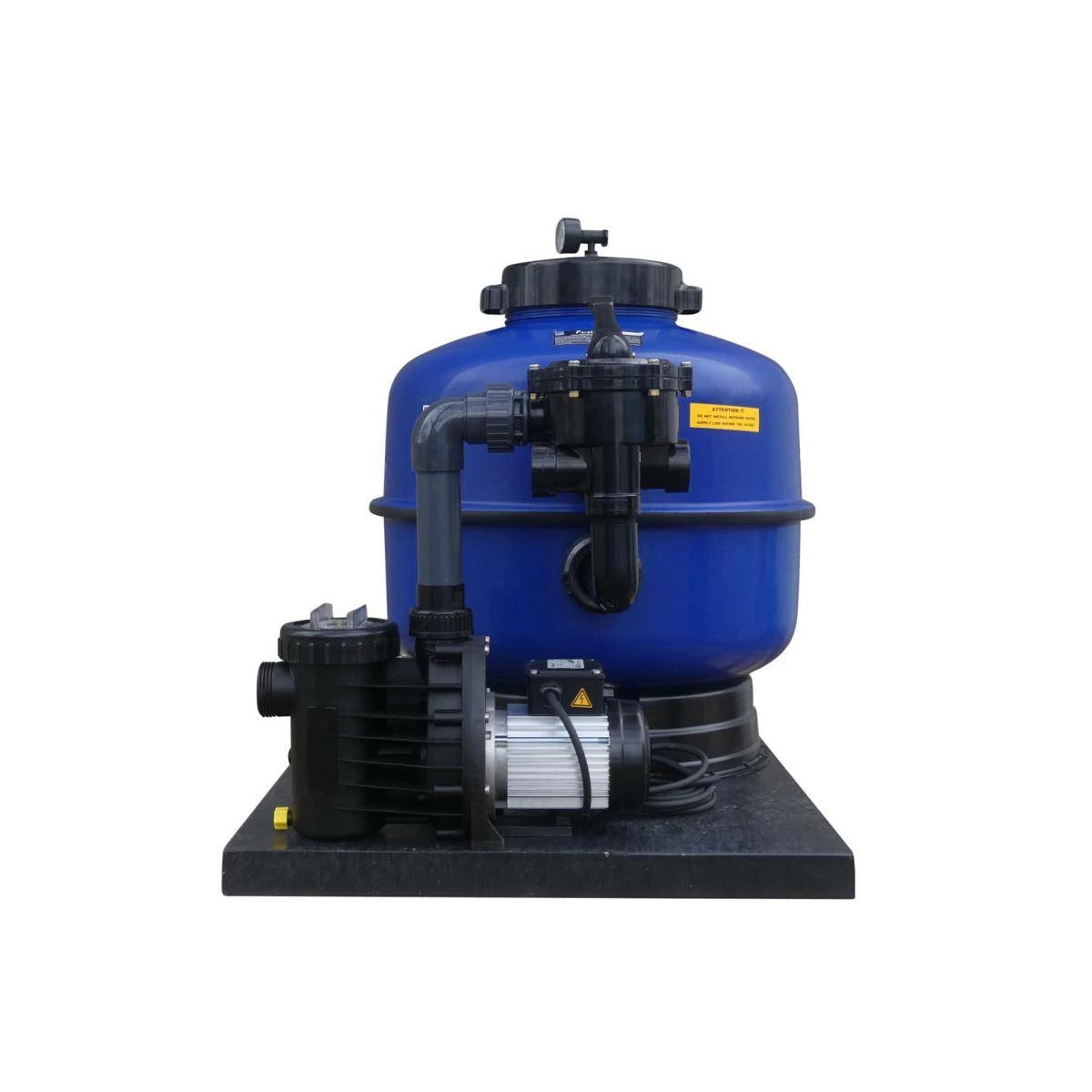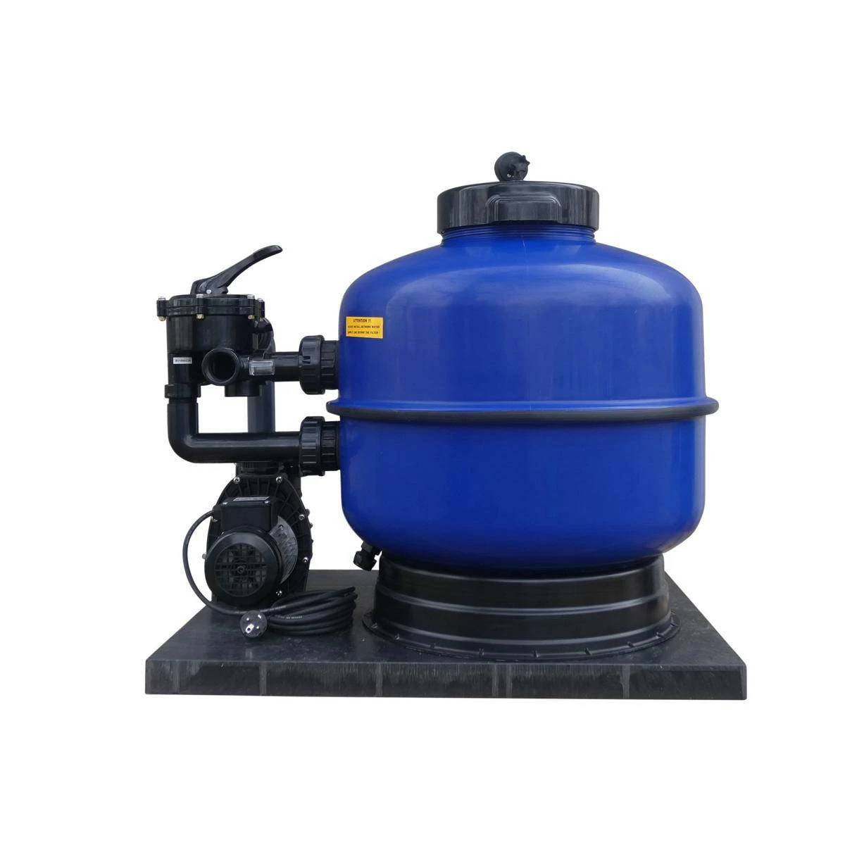 - Lieferung: Filterkessel, Wegeventil und Pumpe fertig montiert auf geräuscharmer Grundplatte